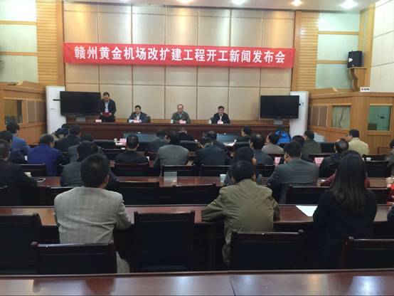 市政府召開贛州黃金機場改擴建工程開工新聞發布會。圖為發布會現場。
